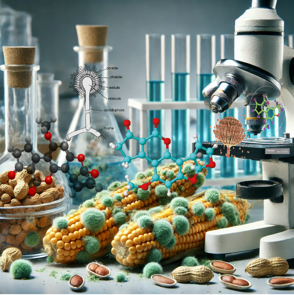 Around 300–400 fungal species produce mycotoxins, which are toxic metabolites that contaminate agricultural products and pose significant health risks to livestock, poultry, and humans, even at extremely low concentrations (Latham, 2023). Among them, aflatoxins produced by Aspergillus species (Figure 1) are particularly dangerous, contaminating cereals, oilseeds, spices, and nuts during both cultivation and storage. Aflatoxins, highly toxic secondary metabolites produced by certain Aspergillus species, rank among the top five agriculturally significant mycotoxins. These toxins primarily contaminate cereals, oilseeds, spices, and nuts during both field cultivation and storage. Among the 13 naturally occurring aflatoxins, types B1, B2, G1, and G2 are the most potent. Aflatoxin M1 and M2, derivatives of B1 and B2, can even seep into the milk of animals consuming contaminated feed, posing severe health risks such as liver cancer in vertebrates. The production of aflatoxins is regulated by a complex genetic pathway, primarily involving the aflR gene, along with other genes like aflS, aflP, and aflQ. Interestingly, not all Aspergillus species carrying these genes produce aflatoxins, highlighting the intricate genetic and evolutionary dynamics of these fungi (Sharma et al., 2025).