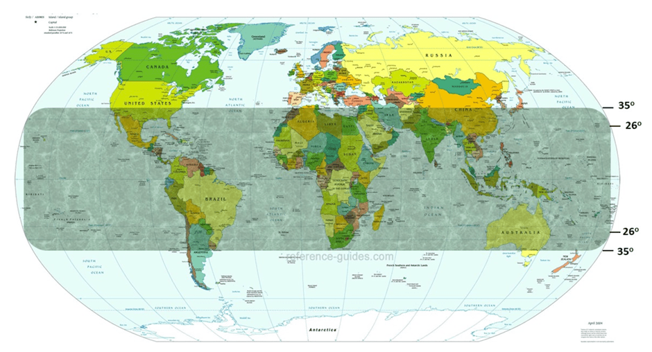 Figure 2. The global distribution of Aspergillus species, with the intensity of the grey hue varying by latitude, between the two hemispheres (Sharma et al., 2025).