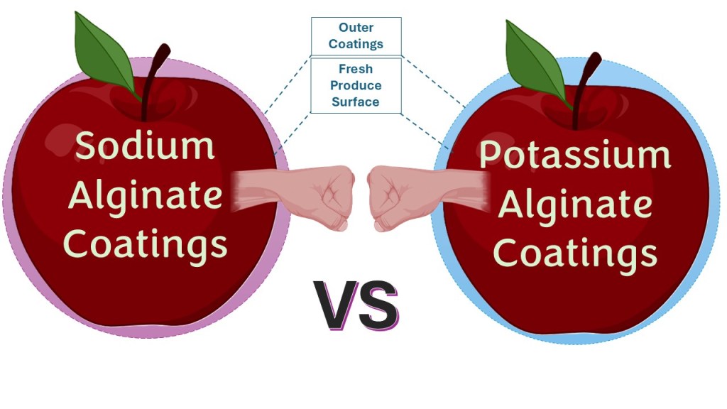 However, the main objective of this study is to explore the use of potassium alginate as a substitute for sodium alginate in edible coatings. Both sodium and potassium belong to the same group in the periodic table (alkali metals) and possess similar chemical characteristics. At the same time, there is growing awareness of the need to reduce excessive sodium intake in human diets, while potassium, an essential mineral, plays a critical role in regulating vital bodily functions. Furthermore, potassium alginate, when combined with essential oils, holds great potential for enhancing the shelf life of fresh produce and could represent an innovative and eco-friendly solution for the food packaging industry.