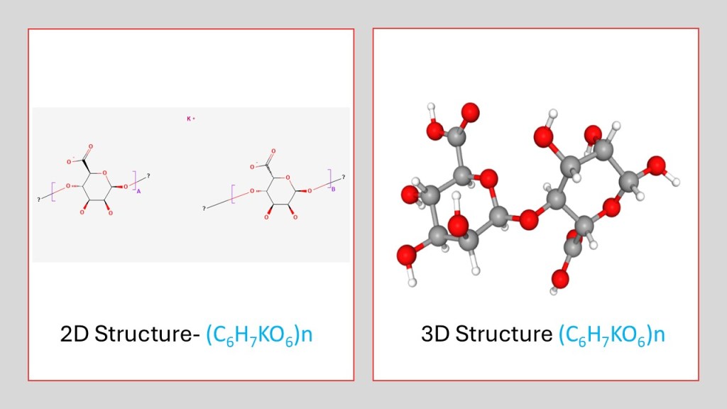 Figure 3: 2D and 3D structure of potassium alginate (Image Source: NCBI)