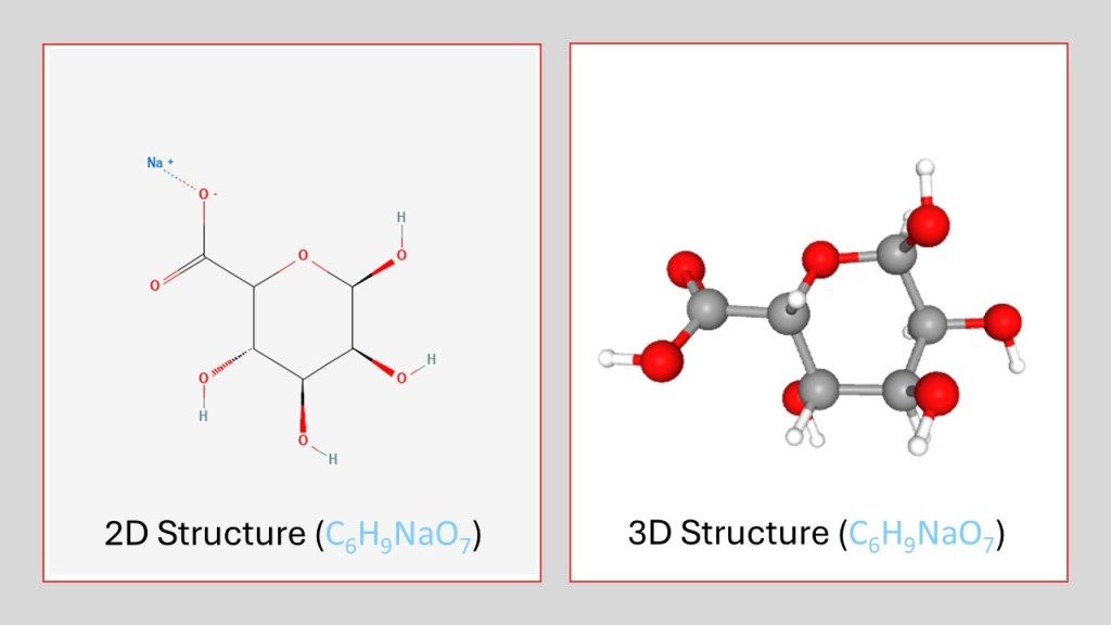Figure 2: 2D and 3D structure of sodium alginate (Image Source: NCBI, 2022).